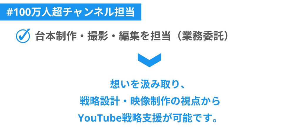 登録者100万人超のYouTubeチャンネル案件(撮影・台本・編集)
