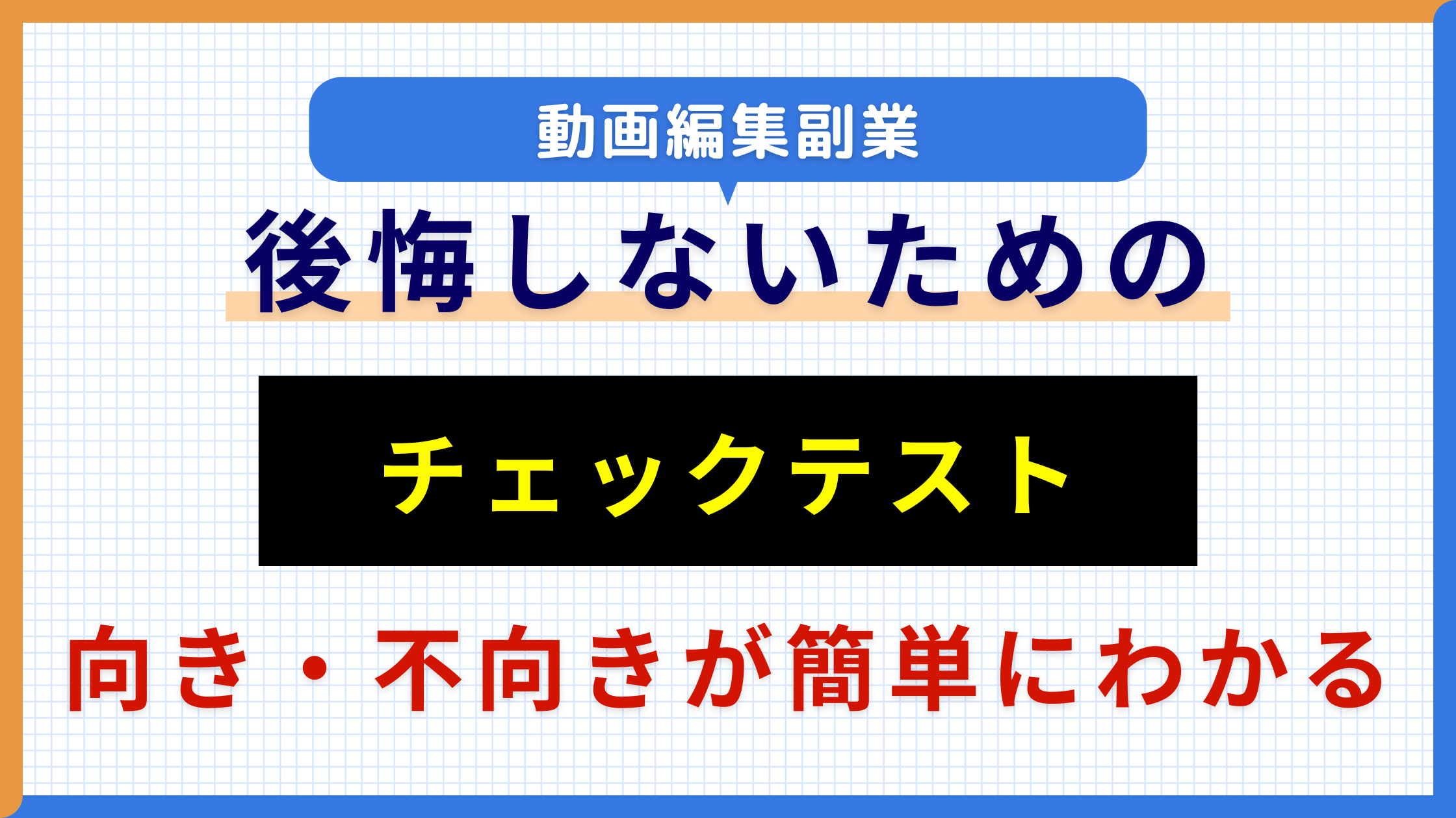 - 動画編集の副業について、「はい」「いいえ」で答えられる簡単な向き・不向きチェック